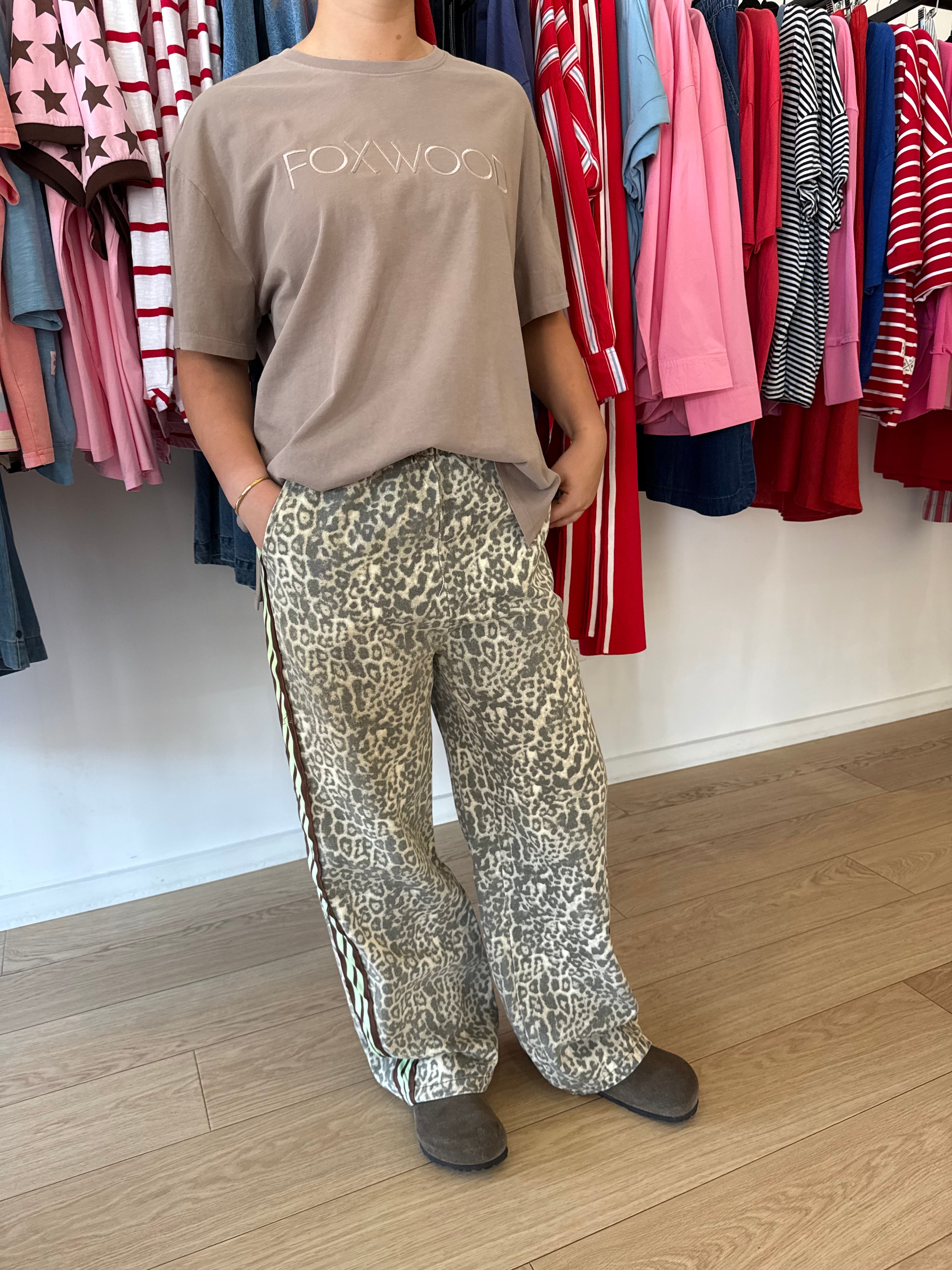LARA LEOPARD RACER PANTS || CHOC/MINT