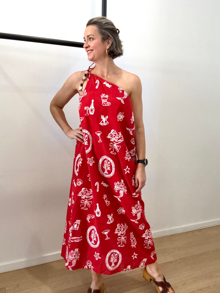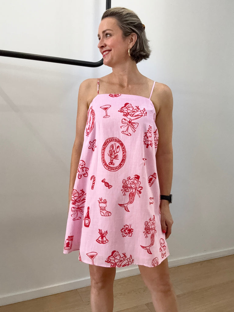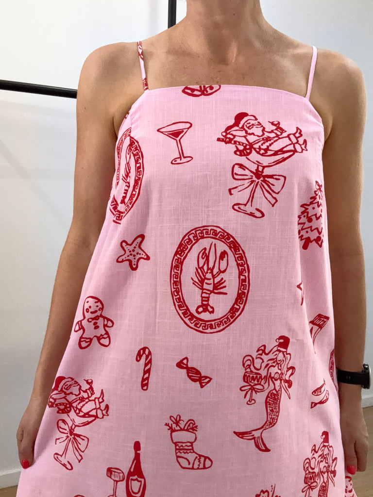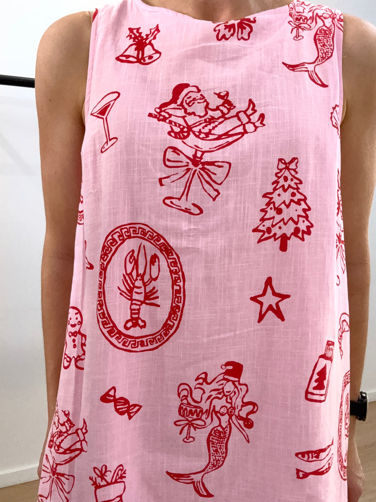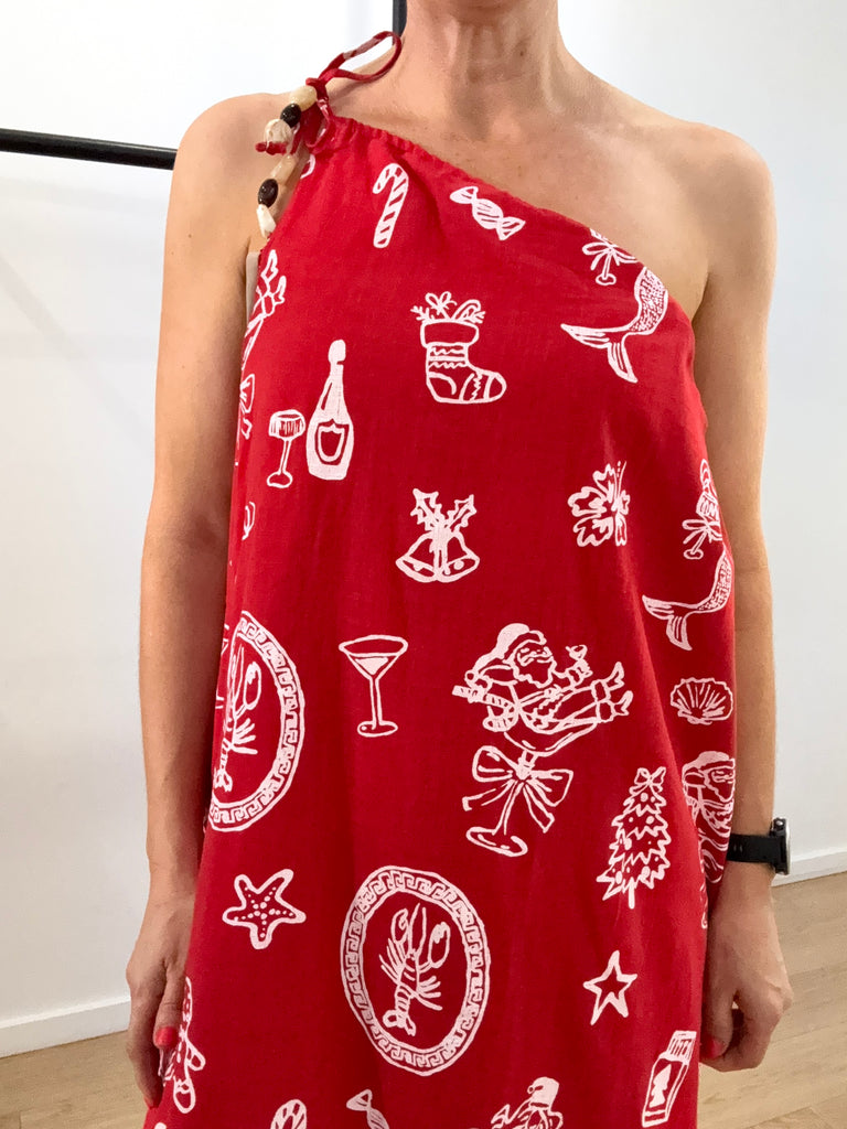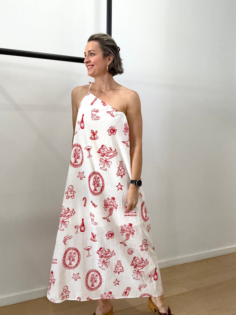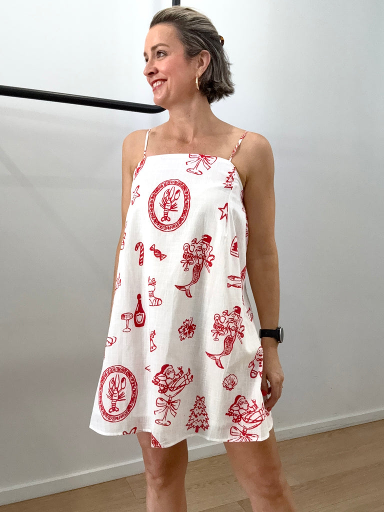 HOLLY XMAS MINI DRESS || WHITE/RED