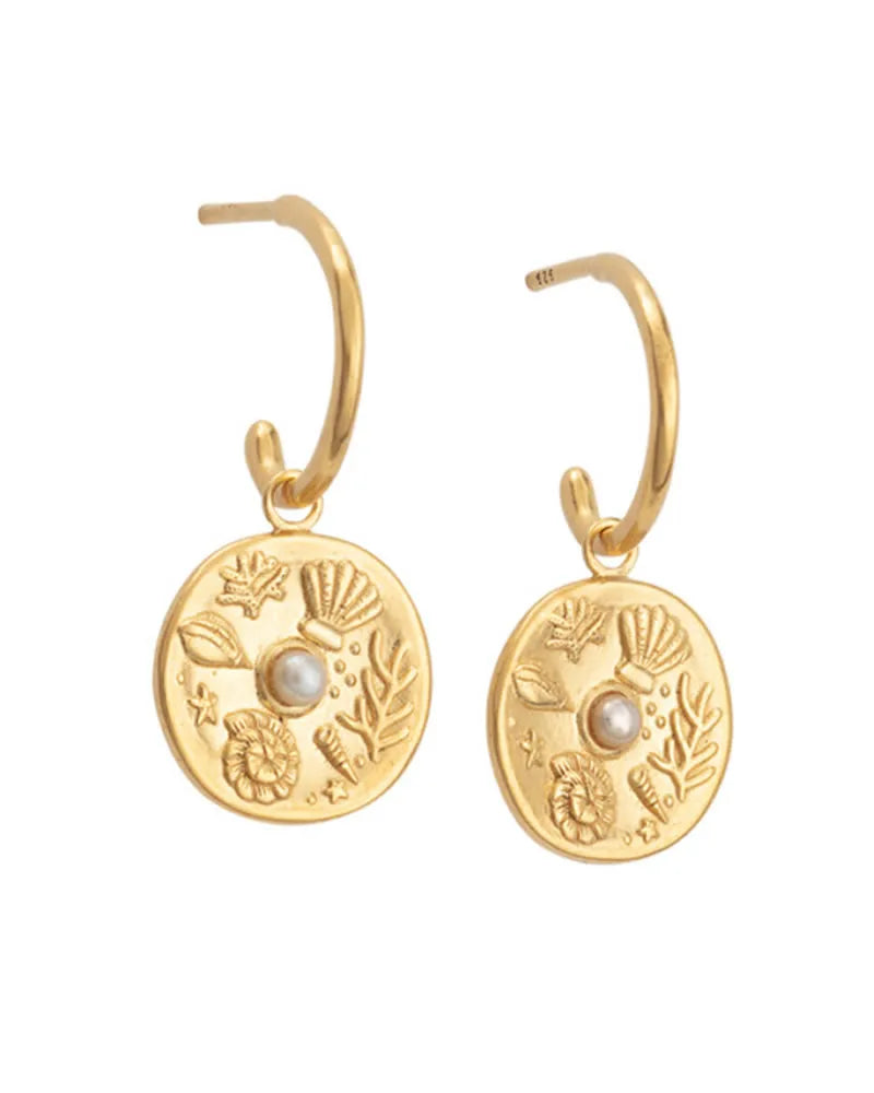 Meet Daniella – small in size, big on charm! These delicate hoop earrings feature a round medallion-style dangle with a petite faux pearl at the centre of nautical designs. Measuring 1cm x 2.5cm, they’re the perfect mix of subtle shimmer and timeless style. A little treasure for your ears!. Available in gold & silver.