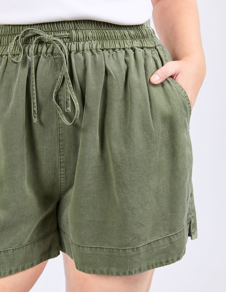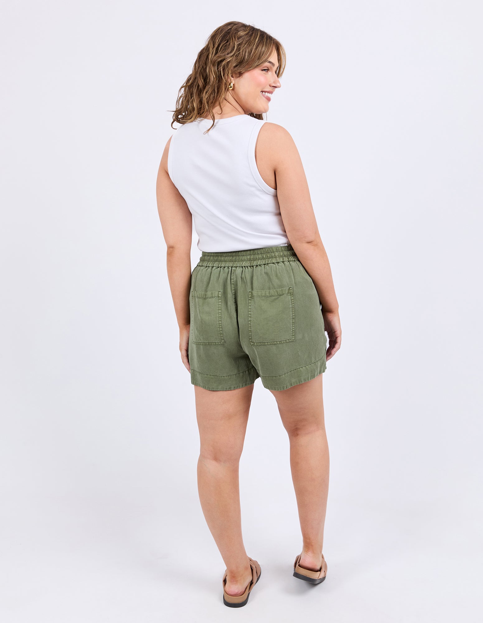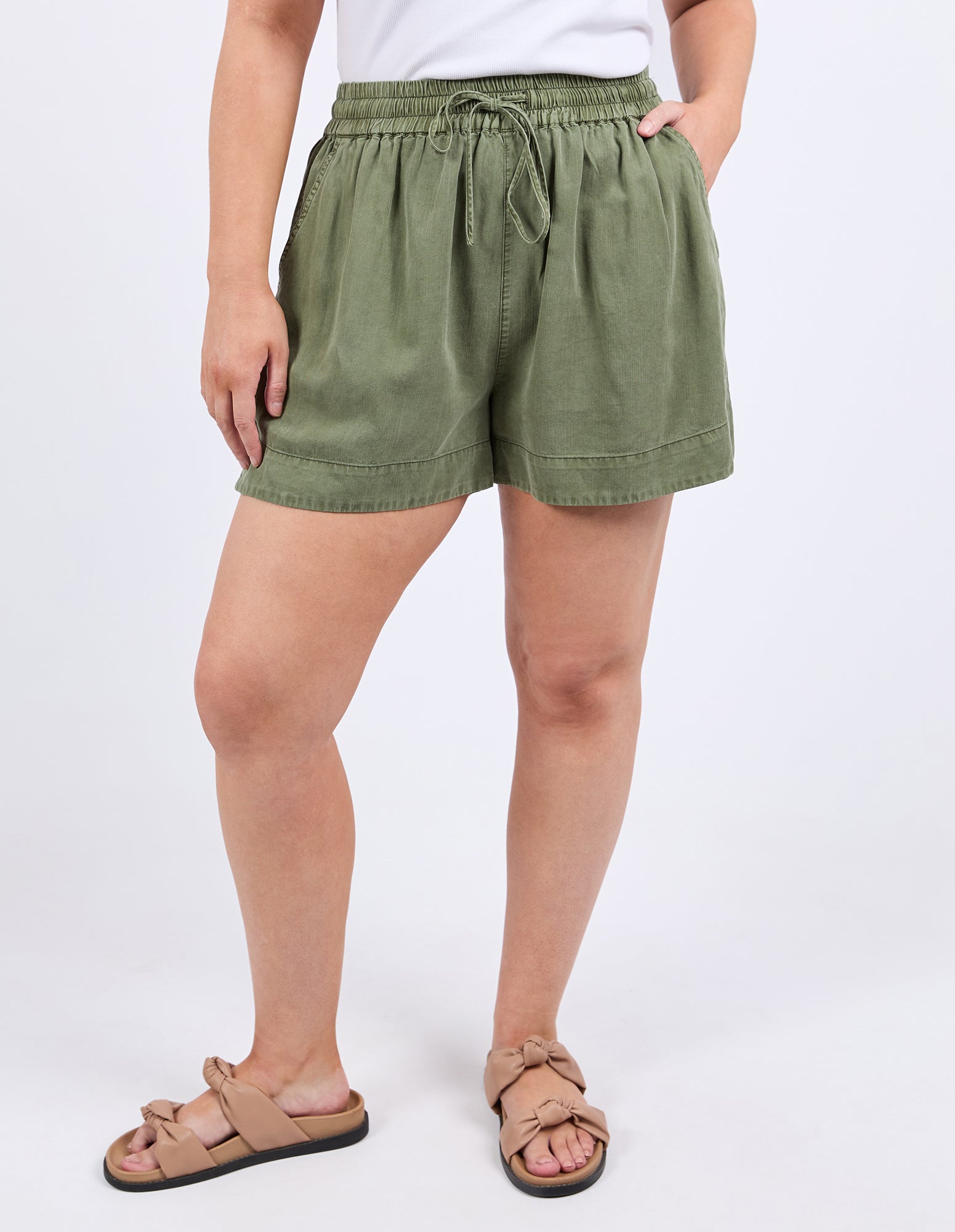 Introducing the bliss washed short: elastic waist with deep pockets, soft fabric, and match back with bliss shirt. Style it your way for an effortless look that works for any day of the week.