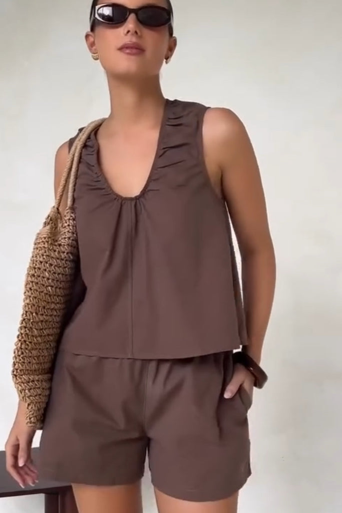 PACEY WOVEN TOP || BABY BLUE/SILVER