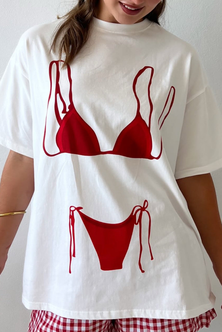 BIKINI BODY TEE || WHITE/RED