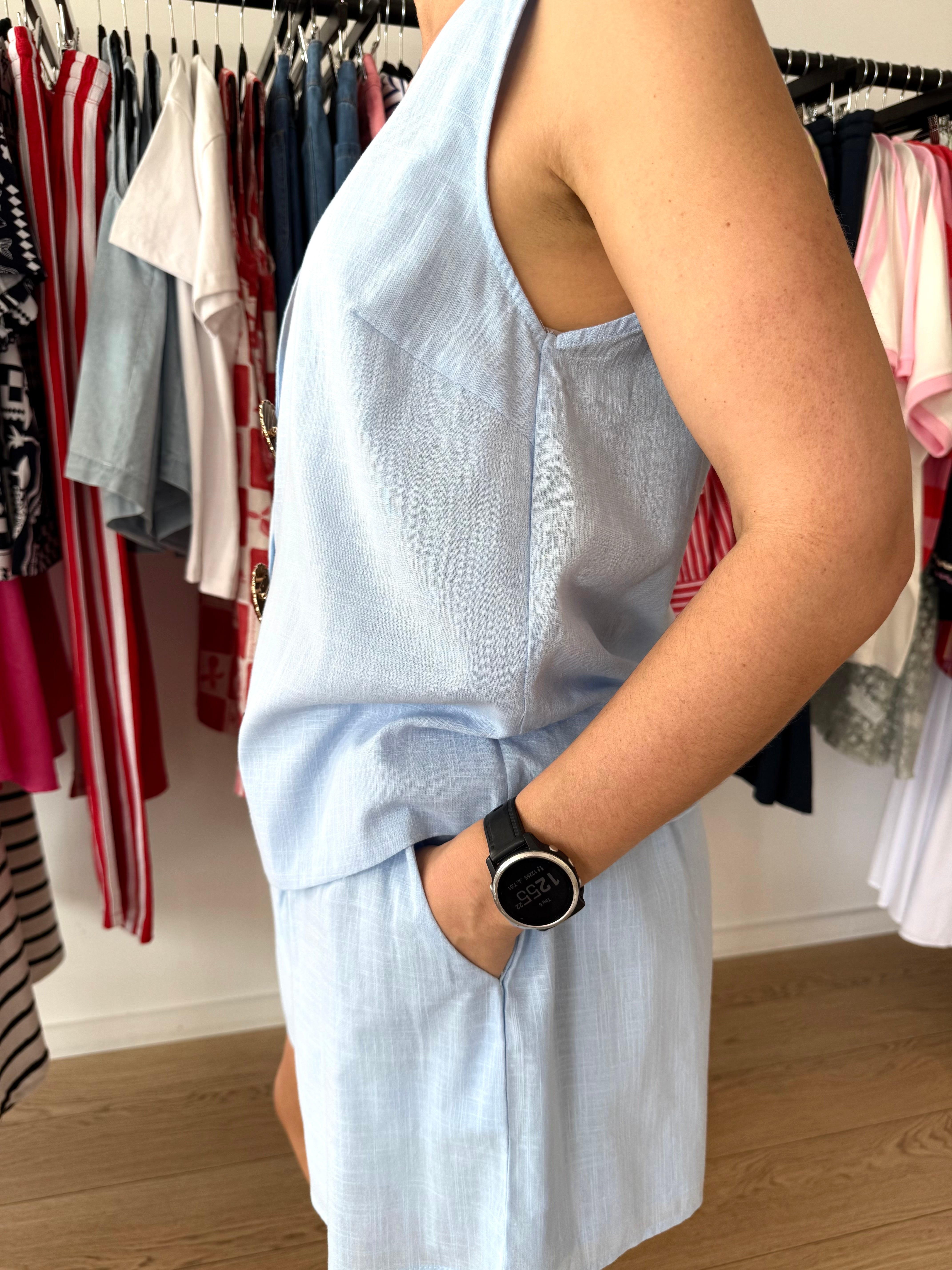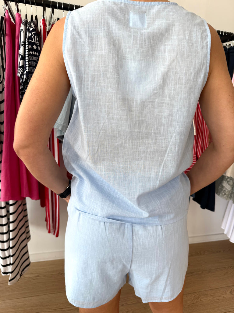 CHLOE SHELL BUTTON VEST SET || BABY BLUE