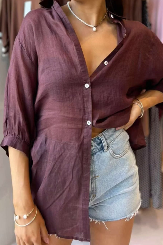 LENA LONG LINEN SHIRT || CHOCOLATE