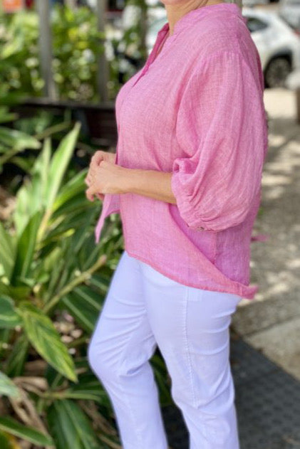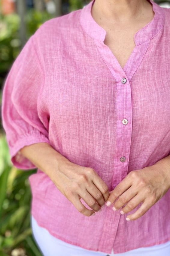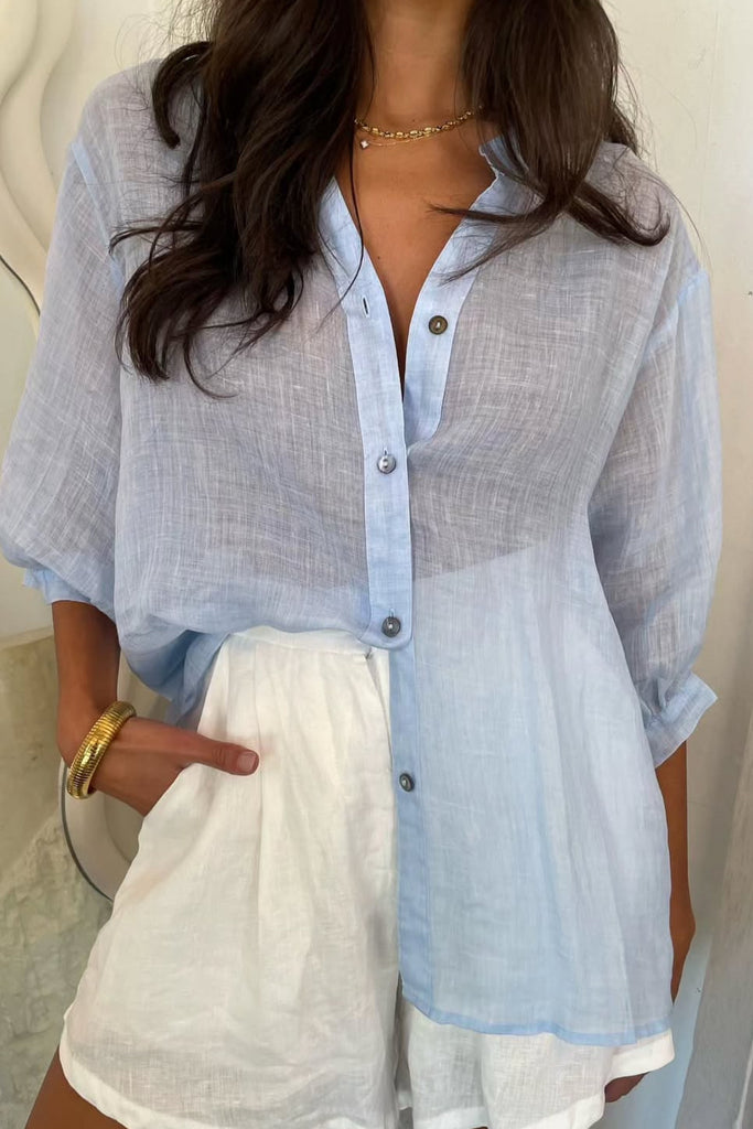 MADDY BUTTON BACK SHIRT || ICE BLUE