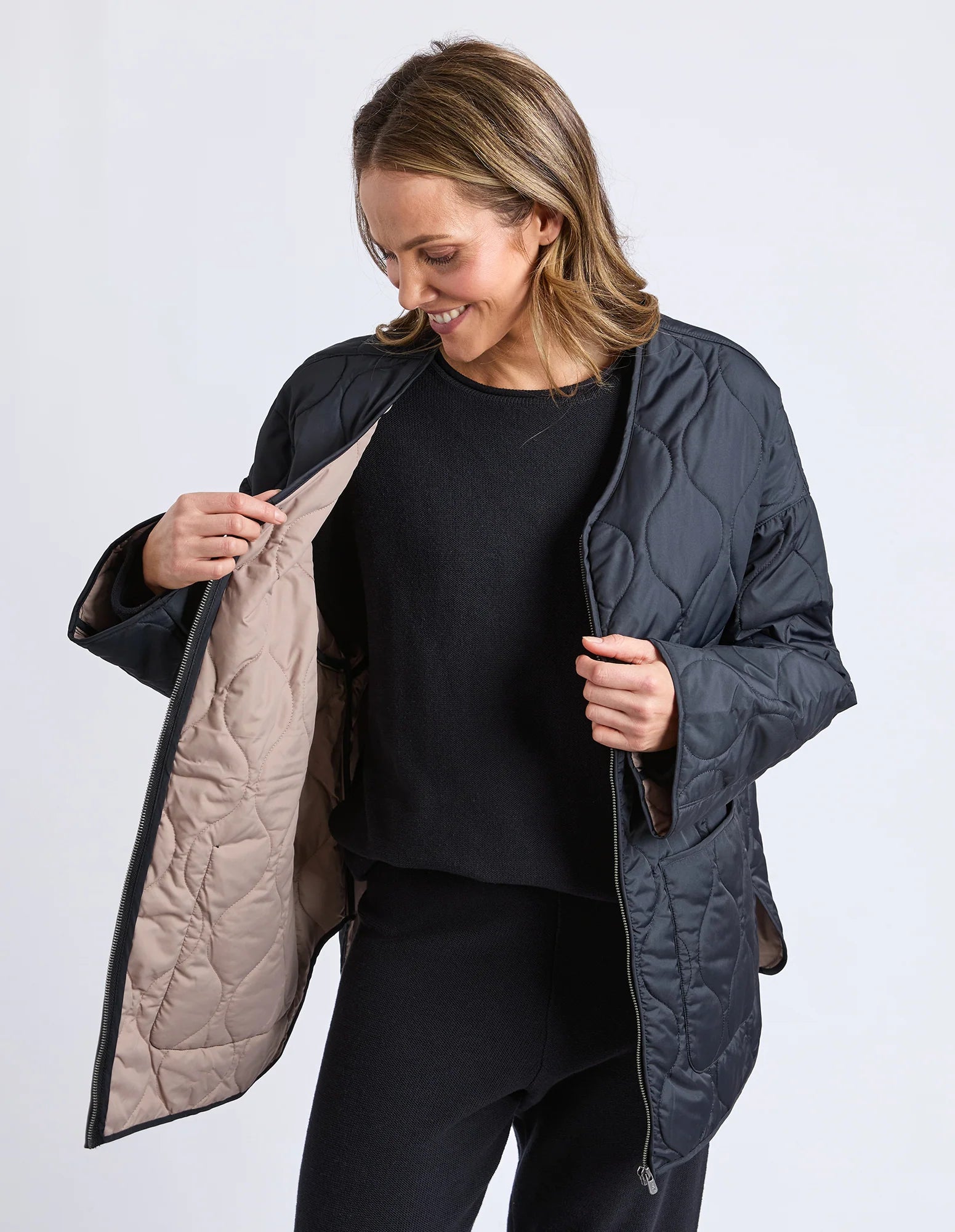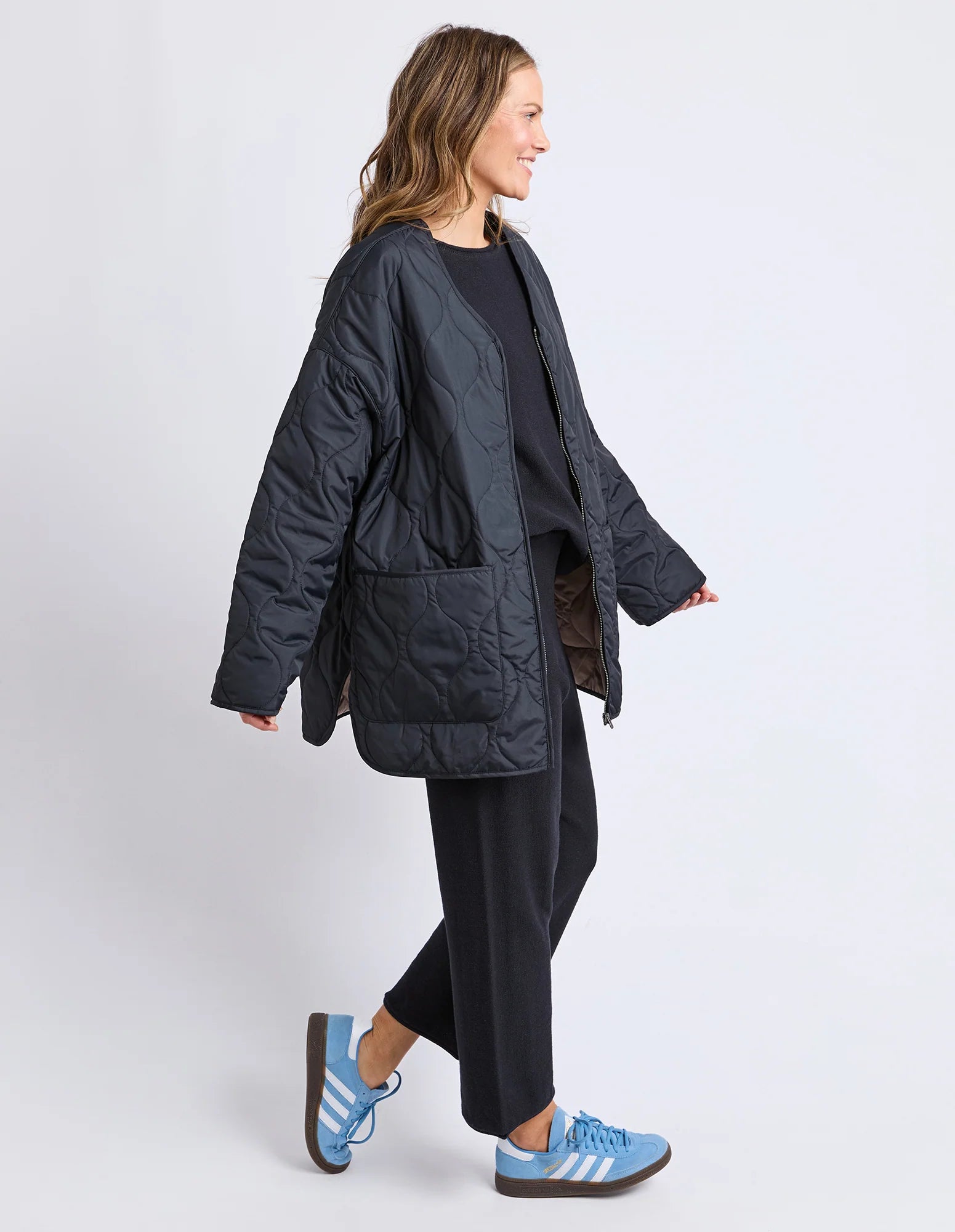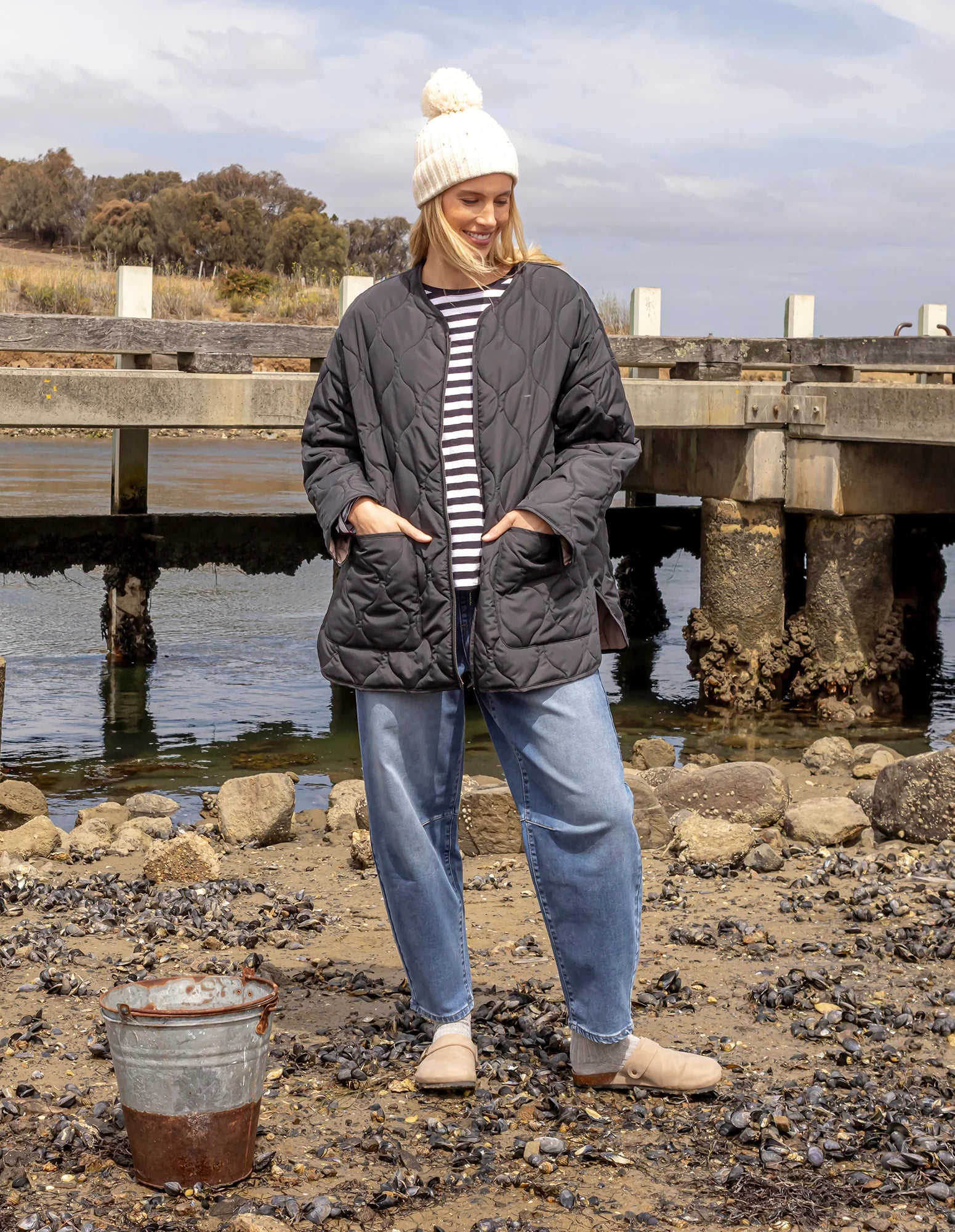 The Elm Dusty Jacket is a cosy outer layer featuring textured onion stitching and warm fill for cooler days. Designed in an oversized fit with a clean hidden zip front, it’s perfect for everyday layering. Throw it over a tee and relaxed pants for effortless warmth and style.