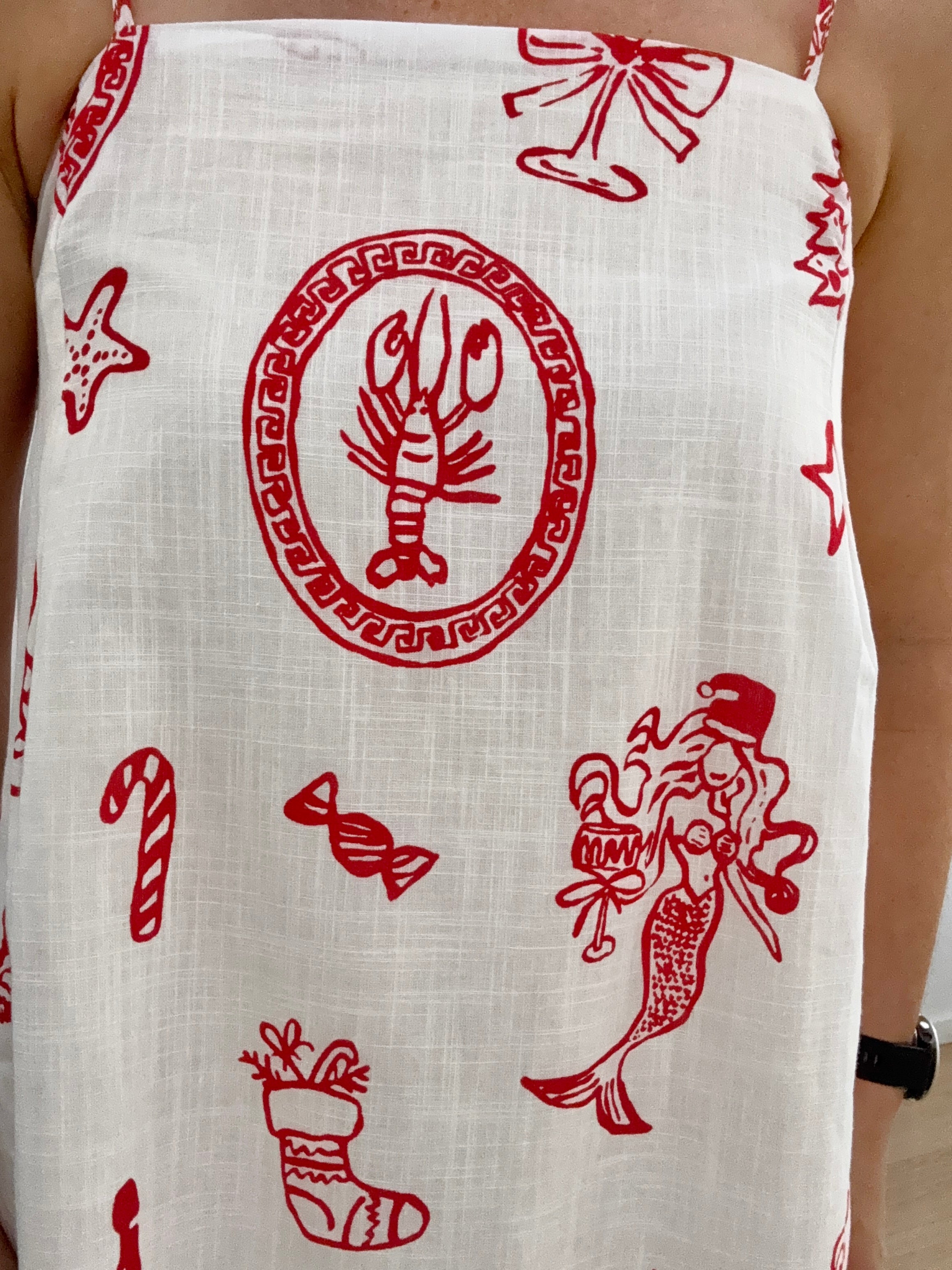 HOLLY XMAS MINI DRESS || WHITE/RED