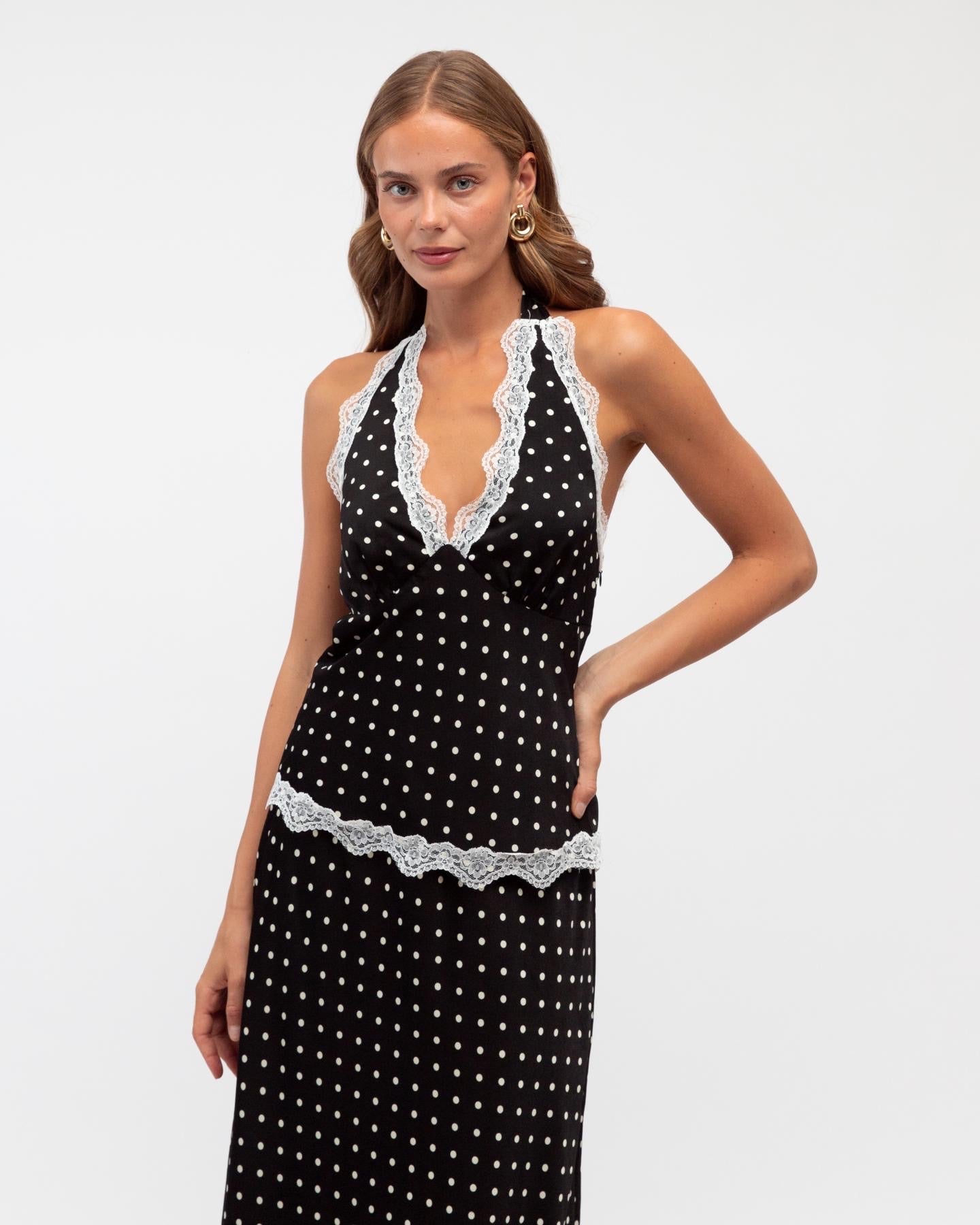 IVY POLKA DOT MAXI SKIRT || BLACK/CREAM