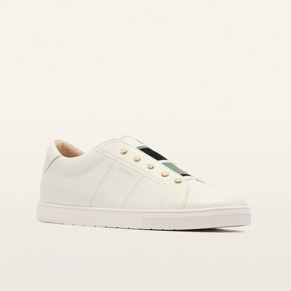 Add something special to your staples with Lee in luxe White Tumbled. Featuring colour-pop elastic accents and chic stud detailing, it adds preppy, nautical inspired charm to a classic low-profile white sneaker silhouette. A slip-on design built on a lightweight sole with cushioned support, made to carry you effortlessly through the day.