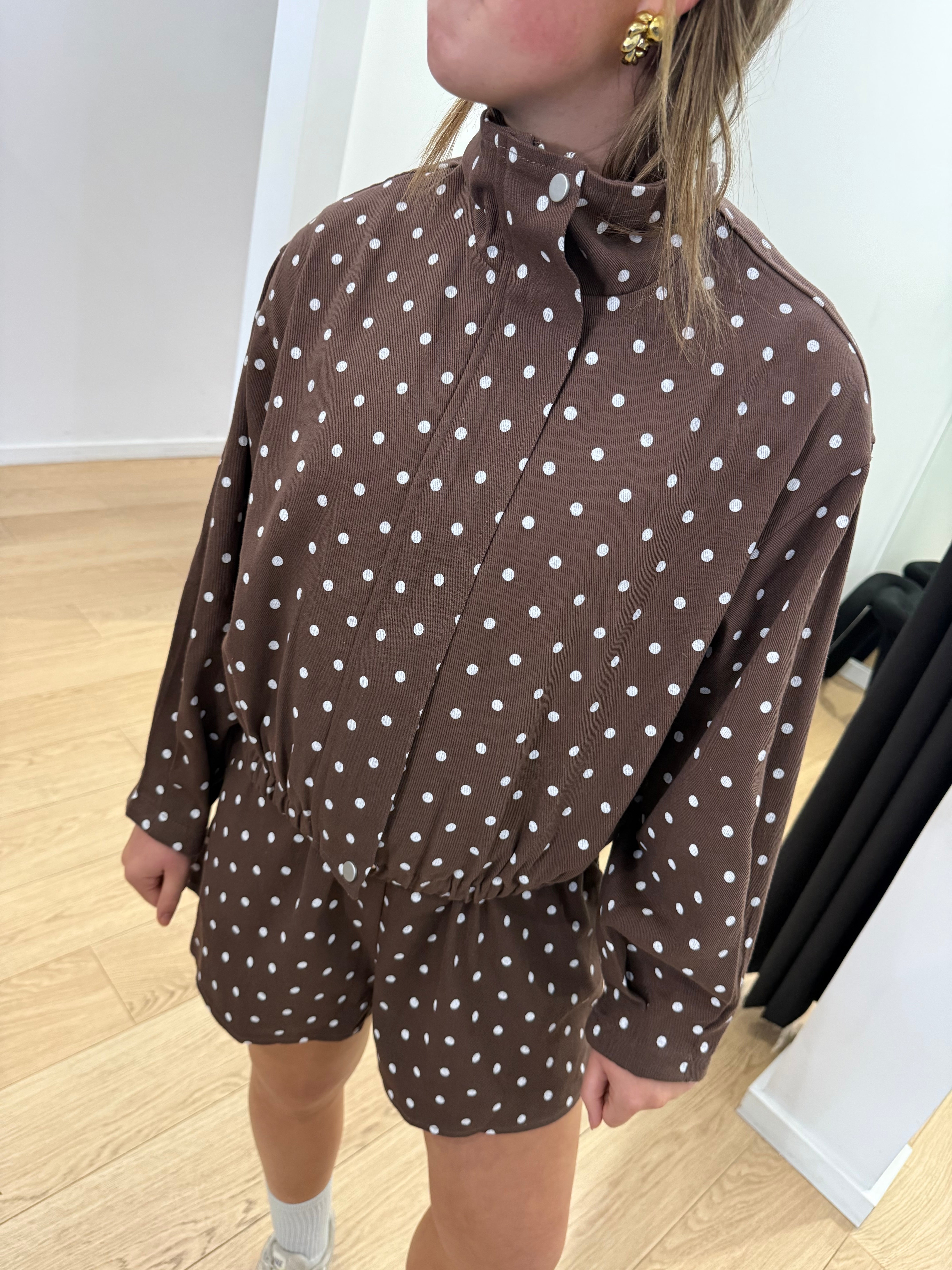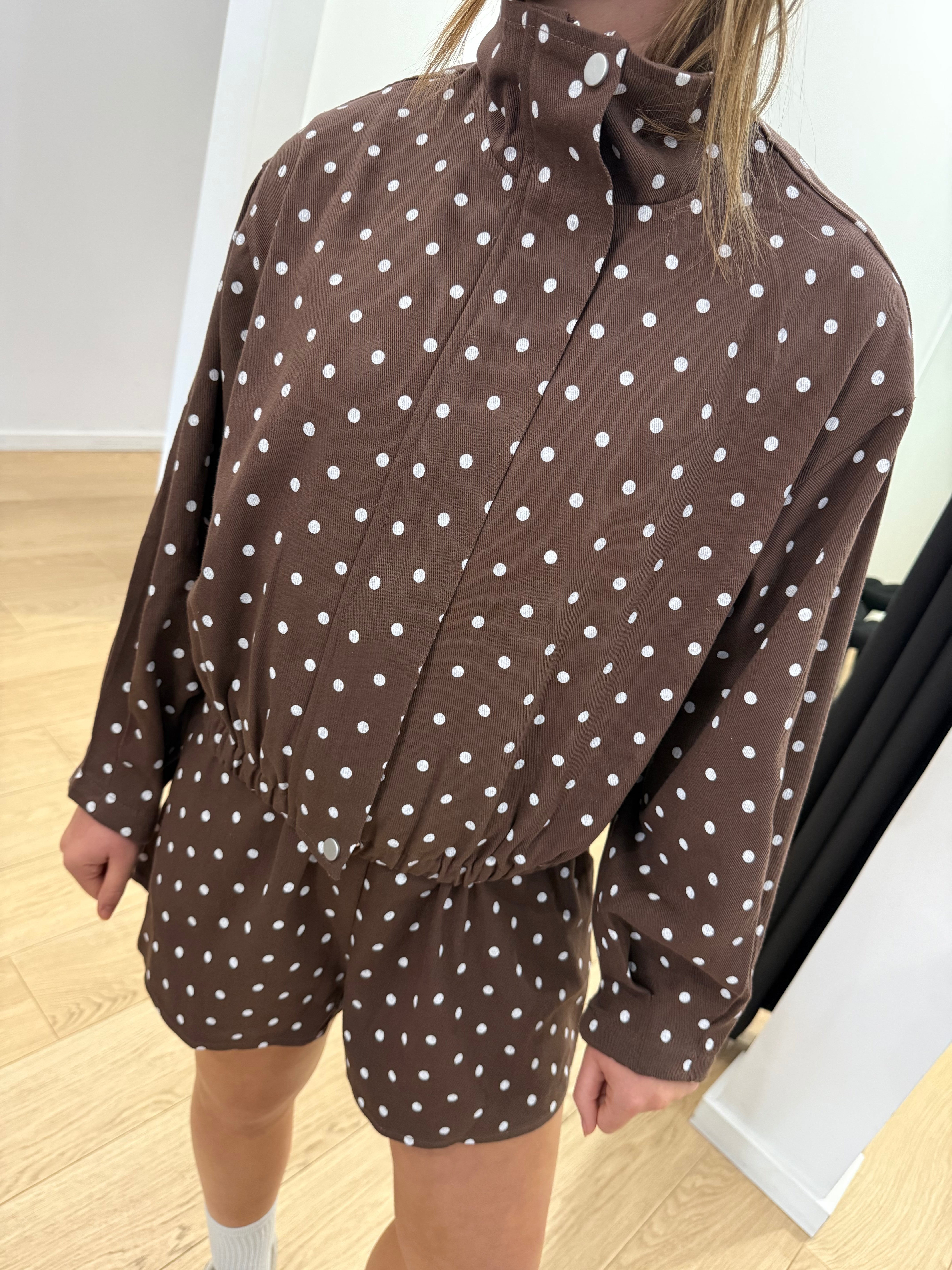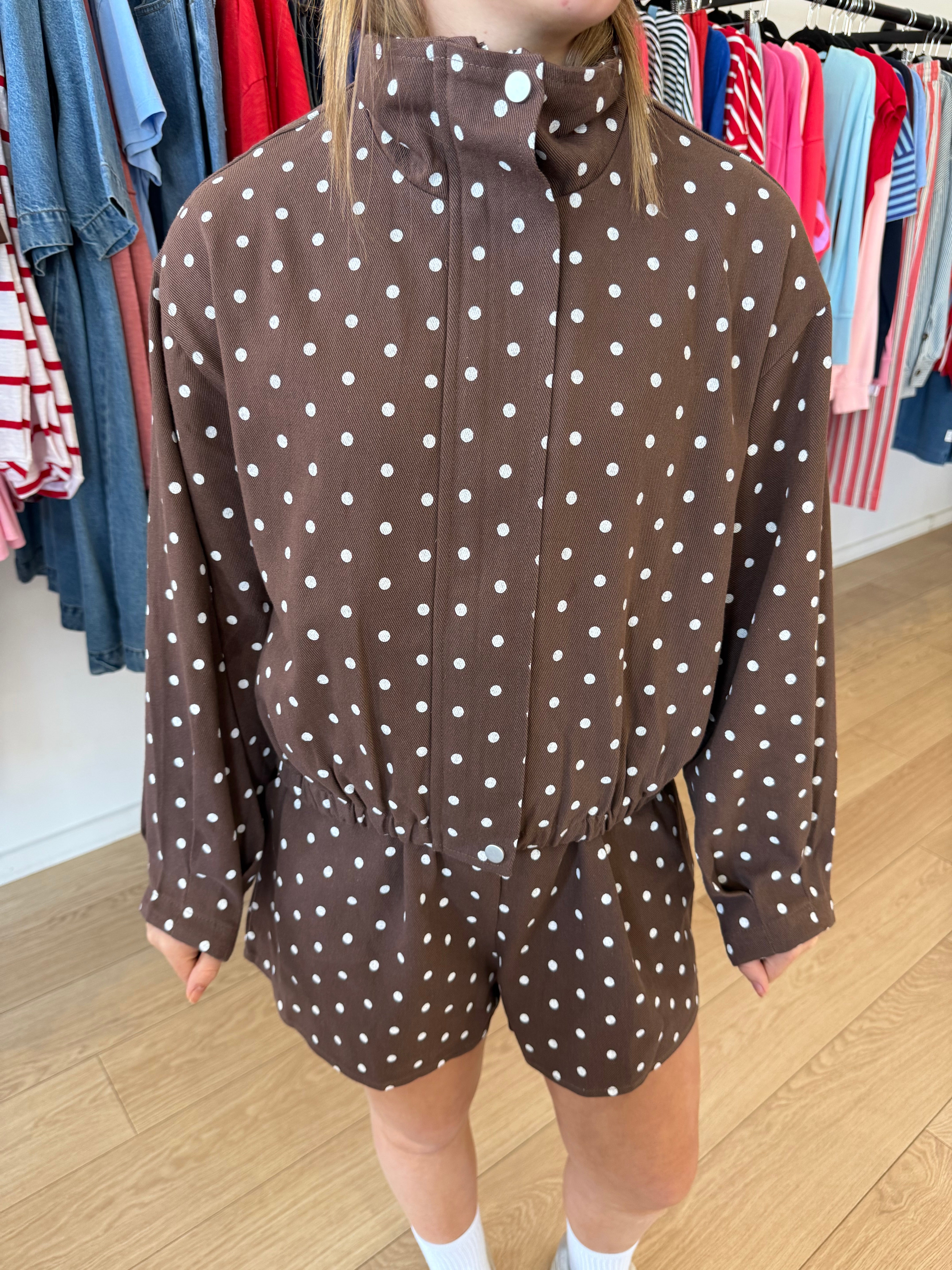 LILY FUNNEL NECK JACKET + SHORT SET || CHOC POLKA DOT