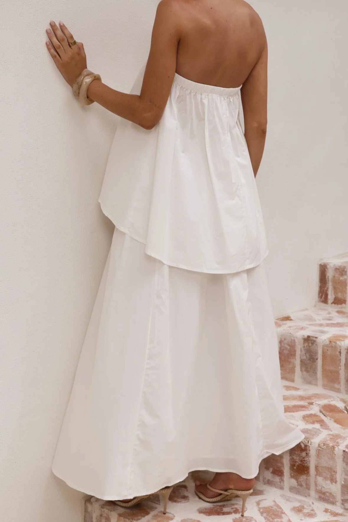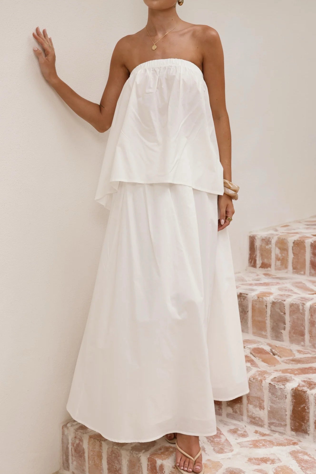 SAYLOR STRAPLESS TOP + SKIRT SET || WHITE