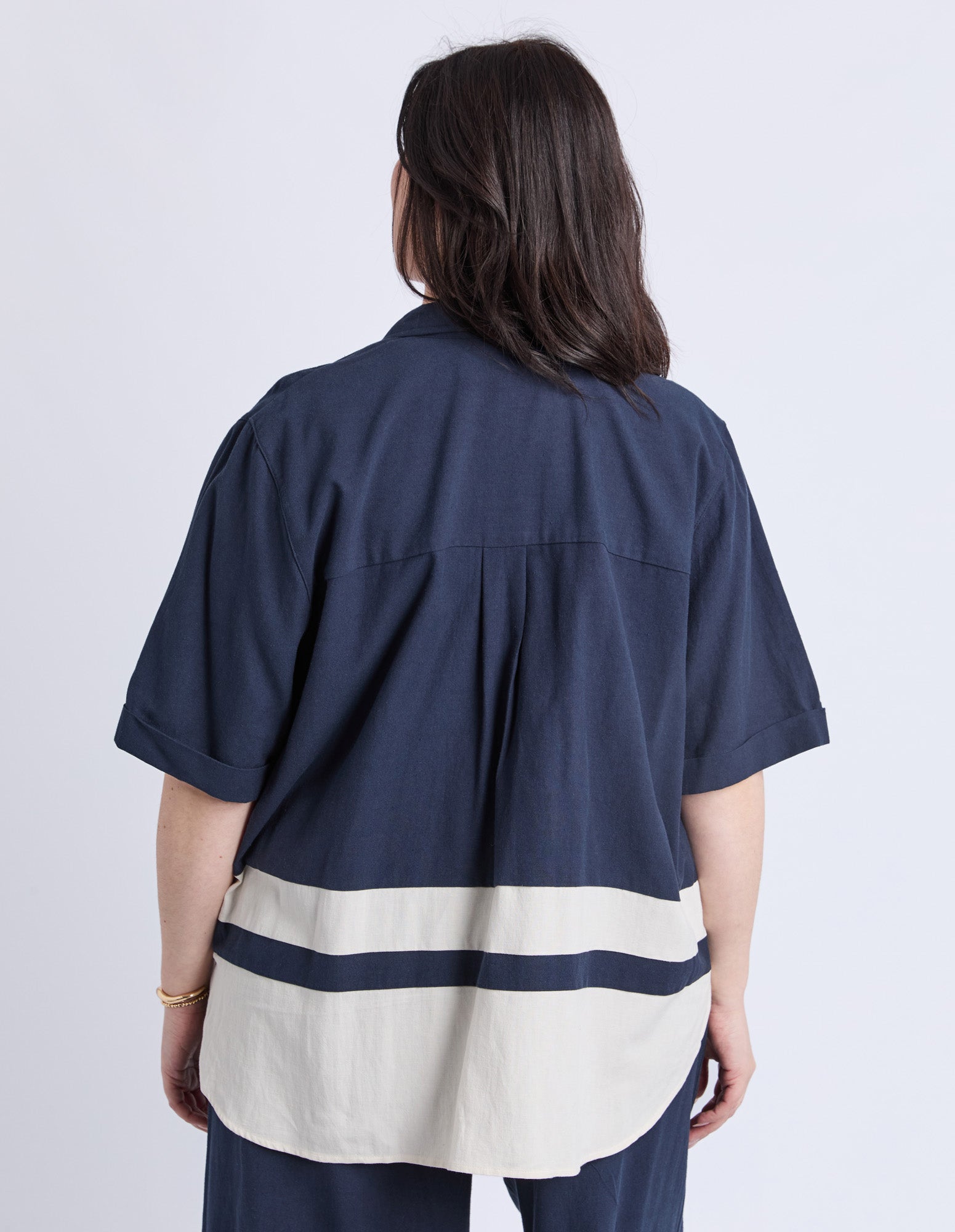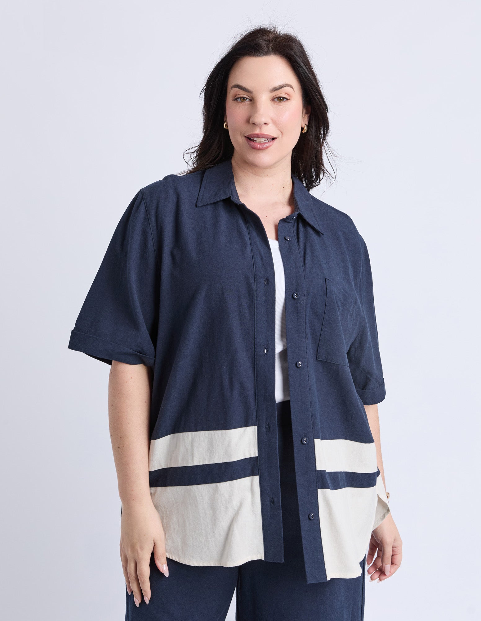 From workdays to weekends, the scarlet shirt delivers full button closure, relaxed fit , and contrast panel detail at hem . Style it your way for an effortless look that works for any day of the week.
